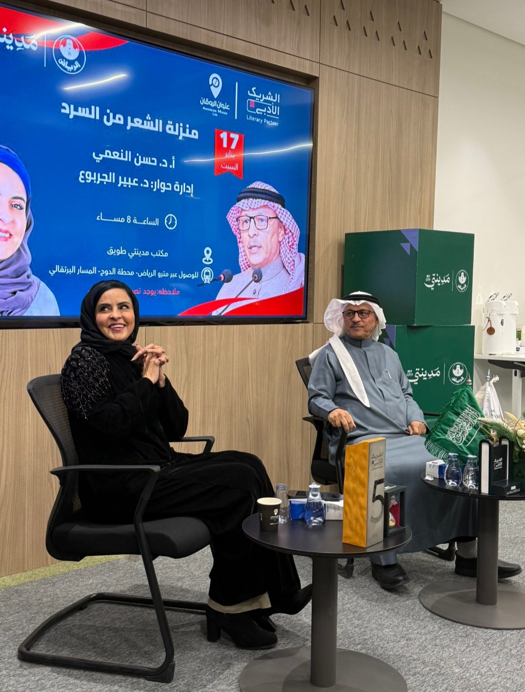 أقيمت أمسيّة ثقافية مثرية بعنوان “منزلة الشعر من السرد” يوم السبت الماضي الموافق 17 يناير، الساعة 8 مساءً، في مكتب مدينتي طويق، الرياض. شارك في الأمسية أ. د. حسن النعمي، الذي تحدث عن العلاقة بين الشعر والسرد، مستعرضاً وجهات نظر متعددة حول هذا الموضوع الأدبي الحيوي. وإدارة الحوار كانت للدكتورة عبير الجربوع، التي قادت النقاش مع الدكتور النعمي لاستكشاف أبعاد هذه العلاقة.
